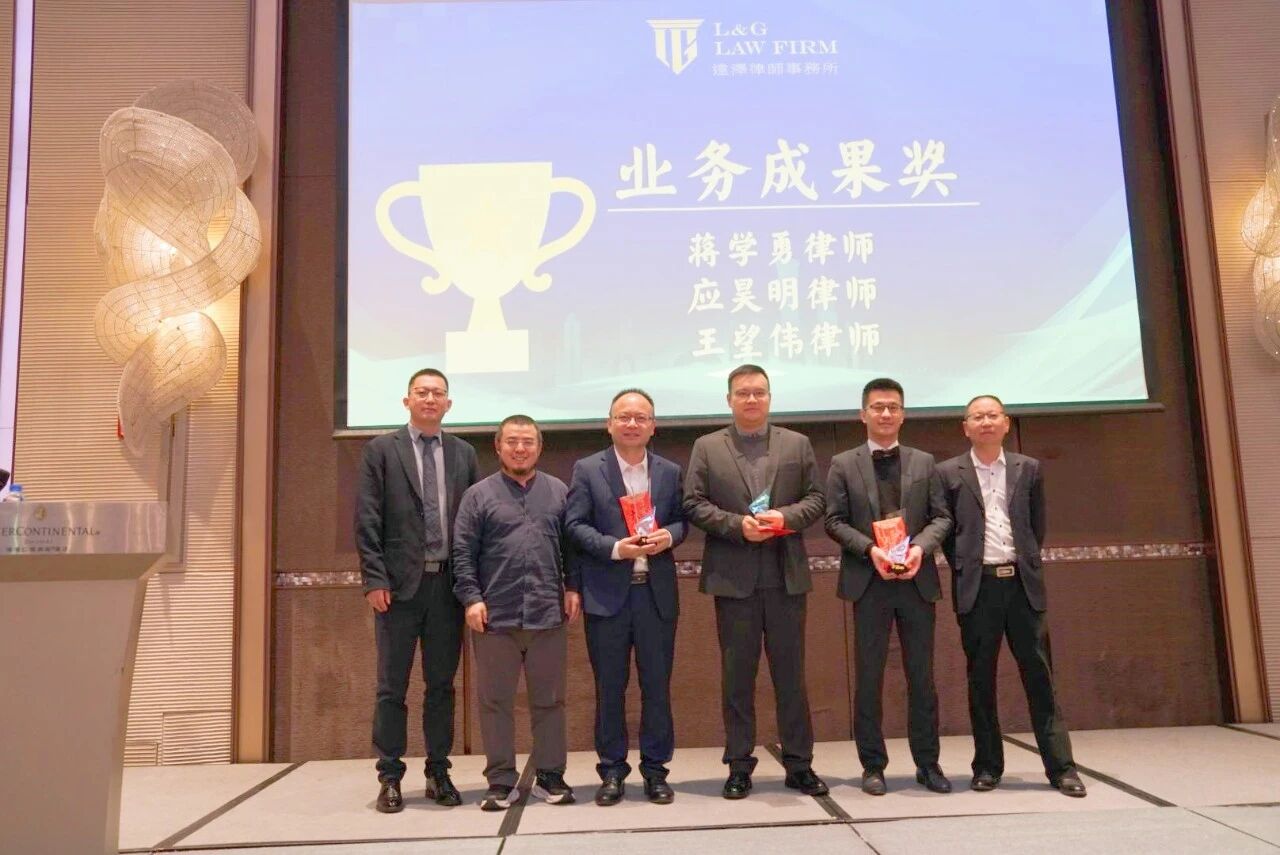 蒋学勇律师、应昊明律师、王望伟律师荣获 “业务成果奖”。刘松律师、王叙杰律师等几位颁奖嘉宾,为获奖者颁奖。