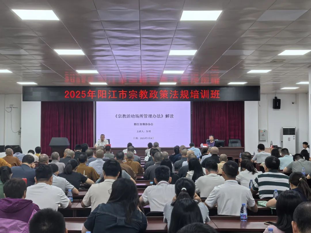 近日,阳江市民族宗教事务局在阳江市委党校举办全市宗教政策法规培训班。市宗教事务治理专项行动工作专班成员单位、各县(市、区)党委统战部、阳江滨海新区(阳江高新区)党建办分管领导及业务骨干,各镇(街道)统战委员以及宗教界代表人士等130余人参加培训。